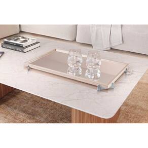 Bandeja Decorativa Gala Cromado com Espelho - Cor: Off White