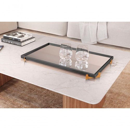 A bandeja Decorativa da Larflex é uma peça diferenciada, possui espelho em sua forma central, que proporciona mais elegância à bandeja. Ela é versátil, pode ser posta para decorar e apoiar objetos sob móveis na sua sala de estar, sala de jantar, quarto etc. Além de agregar na decoração do ambiente, pode ser utilizada para recepcionar seus convidados em seus encontros sociais. Outra dica de uso, já que a bandeja possui uma estética mais formal, é em escritórios, também para servir ou apoiar materiais de trabalho.