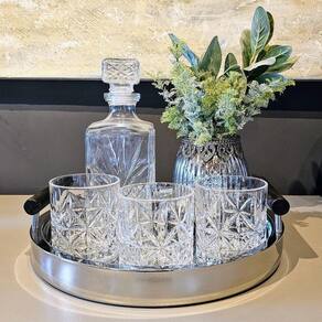 Transforme seu ambiente com a sofisticação e funcionalidade da nossa bandeja redonda prateada. Com alças em madeira, essa peça é perfeita para adicionar um toque de charme e praticidade à sua decoração.