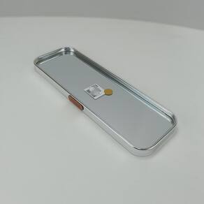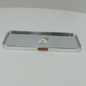 BANDEJA Altura: 1,5 cm Largura: 30 cm Profundidade: 10 cm Peso: 0,22 Kg Material: Metal Cor: Prata