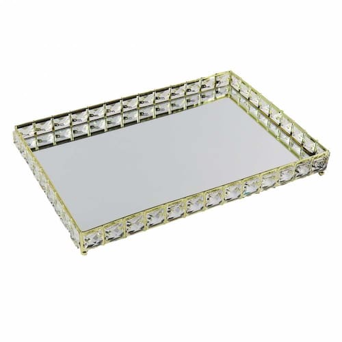 Cód.: KV0247 Bandeja Decorativa Retangular Dourada Cristal com Espelho Material: Metal e Vidro Cor: Dourado Dimensões: 35x25x4cm (CxLxA)