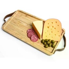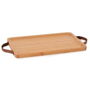 Bandeja Ekos Alça De Couro 29x14Cm.A Bandeja com Alça Couro Ekos 29 x 14 CM tem o estilo da decoração rústico, além de ser sustentável, ajuda a dar um toque de contemporaneidade. Um objeto super flexível que, aliado ao bambu, forma uma dupla imbatível e charmosa.Material leve e resistente, por possuir fibras sem poros, o bambu não compromete o sabor dos alimentos e evita o acumulo de resíduos no produto. Material: Bambu e Couro Medidas: 29 x 14 cm. Marca: Não Informado