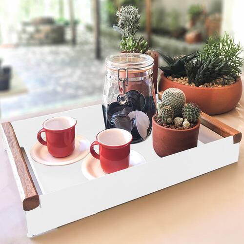 Bandeja em Aço Carbono Decorativa para Café Linha Nexo 40x25cm - Branco