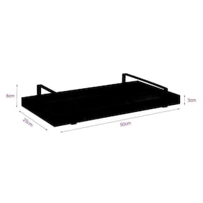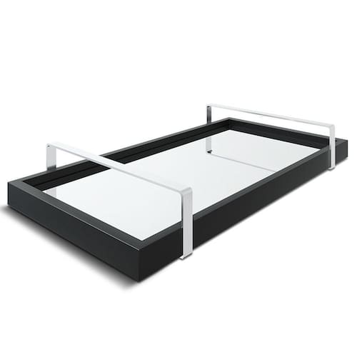 Bandeja Espelhada 25x50cm Preta Com Alça Prata Dimensões: 50cm L x 25m C x 8cm A .Bandeja: Em MDF BP com espelho interno no fundo.Material da Alça: Metal.Cor da Alça: Prata.Descrição: Com esta linda bandeja espelhada, sua decoração vai ficar muito mais elegante. É um coringa na decoração, pois pode ser usada como bandeja de servir ou apenas decorativa. Ela se encaixa perfeitamente em diversos ambientes. Nos quartos, sala de estar, sala de jantar, no banheiro e também na cozinha, porquê nãoOBS: As imagens são ilustrativas, não acompanham objetos de decoração, entre outros. Marca: Lubrano