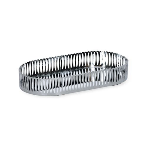 Bandeja Espelhada Oval Em Metal 26x15cm Mart Prata -