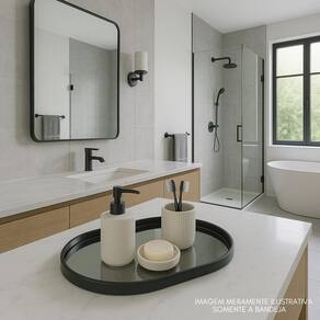 Bandeja Espelhada Decorativa Transforme sua decoração com elegância e praticidade A bandeja espelhada com acabamento dourado ou preto traz sofisticação ao ambiente, seja na sala, no hall de entrada ou no quarto. Perfeita para organizar chaves, acessórios ou pequenos objetos do dia a dia, sem perder o charme. Seu design minimalista e contemporâneo se adapta facilmente a diferentes estilos de decoração, deixando qualquer espaço mais acolhedor e estiloso. Um detalhe simples que faz toda a diferença no visual da sua casa Especificações Técnicas Bandeja Espelhada Material: Polipropileno PP de alta resistência e vidro espelhado Acabamento: Moldura dourada com bordas arredondadas Medidas C x L x A : 30,5 cm x 20,5 cm x 1,5 cm Peso aproximado: 320 g Uso recomendado: Organização de pequenos objetos como chaves, acessórios e cosméticos e decoração de ambientes modernos Imagens ilustrativas. Marca: Não Informado Ean: 7908888908582
