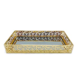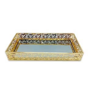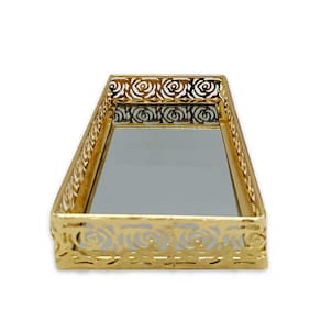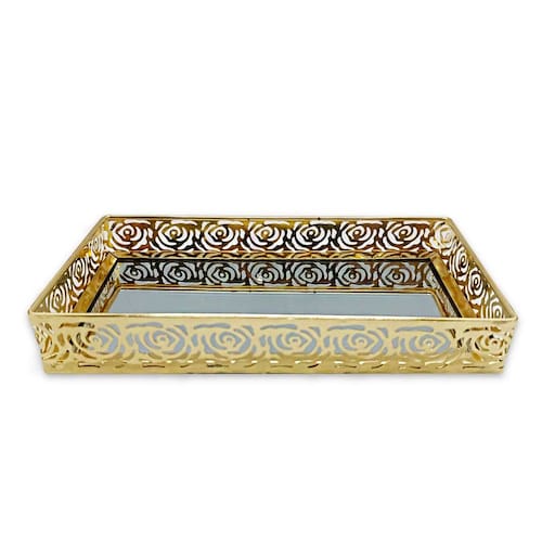 Linda Bandeja espelhada decorativa, toda detalhada e em tamanho perfeito para caber na maioria dos lugares. Pode ser usada no seu lavabo, também fica linda na sala com pequenos enfeites dentro e também na cozinha, com pequenas plantas para dar um charme adicional. Enfim, use sua criatividade ou procure pelos nossos kits prontos com enfeites diversos!