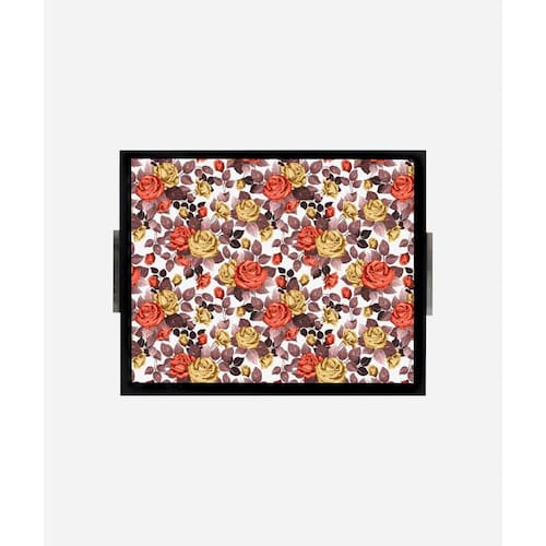 Bandeja Estampada 30x37 - Rosa Dourada Cor: Preta Composição: Madeira, metal, estampa impermeável. Medidas Internas Aproximadas: 2 x 28 x 35 Altura x Largura x Comprimento Medidas Externas Aproximadas: 3 x 30 x 37 Altura x Largura x Comprimento Peso: 503 gramas : Contra defeitos de fabricação. Imagens Meramente Ilustrativas. Produto Ecologicamente correto. Marca: Não Informado