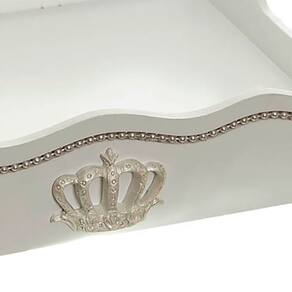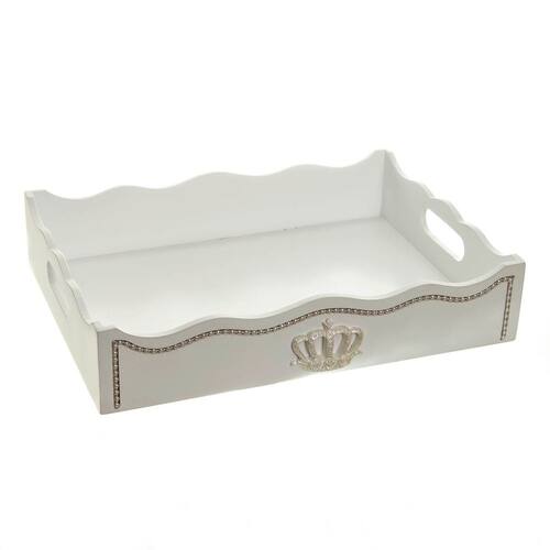 Organizese com essa bandeja confeccionada, especialmente, para levar praticidade e versatilidade para as mamães e com muito estilo. Afinal toda a magia da ambientação se manifesta através desses toques decorativos, que não podemos abrir mão Dados Técnicos Bandeja em madeira MDF e pintura laqueada branca. Detalhe com pérola amarela laços dourados. Medidas Largura: 26 cm Comprimento: 35 cm Altura: 8 cm