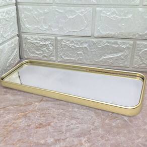 Bandeja Fina Espelhada Decorativa Dourada Sala Lavabo 30cm