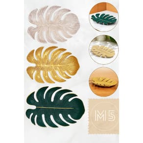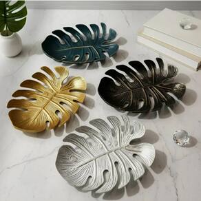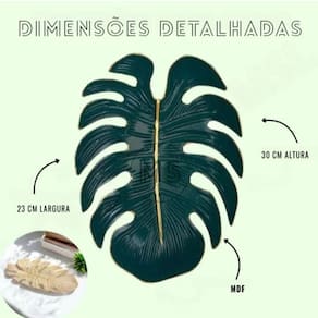 Bandeja decorativa em formato de folha costela-de-adão, perfeita para ambientes modernos.