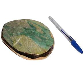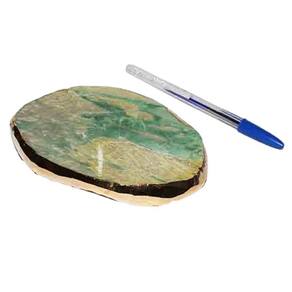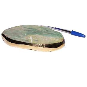 Bandeja de Jade Com Nefrita natural com 13 centimetros com borda dourada ideal para petisqueira e uma otima decoração Parte superior polida