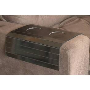 Indicada: Qualquer tamanho de braço de sofá. Modelo: Porta copo. Cor: Preta. Material: MDF. Acabamento: Laqueada. Dimensões: 44cm x 33cm x 0,5cm. Discrição: Bandeja para braço de sofá no formato de esteira, devido sua flexibilidade, permite apoiar objetos no braço do sofá, como, copos, taças, pratos, controles remotos, notebooks, tabletes, celulares, etc . Dica de limpeza: Limpar com pano seco. OBS.: Produto artesanal.