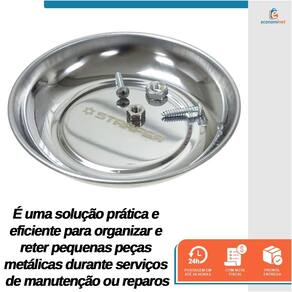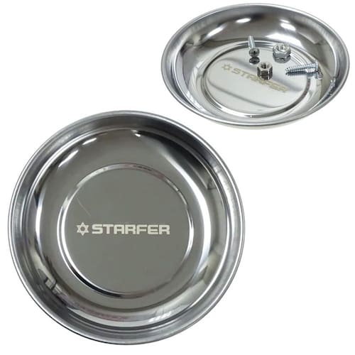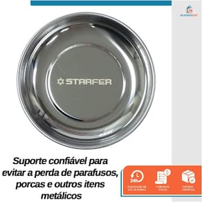 A Bandeja Magnética da Starfer Circular com Prato é uma solução prática e eficiente para organizar e reter pequenas peças metálicas durante serviços de manutenção ou reparos. Ideal para profissionais de oficinas mecânicas, eletricistas, montadores e hobbistas que precisam de um suporte confiável para evitar a perda de parafusos, porcas e outros itens metálicos.