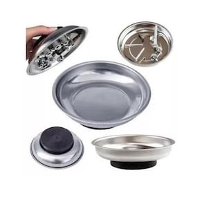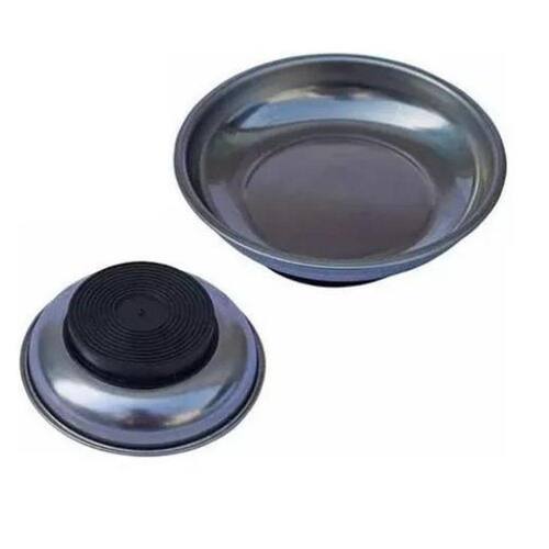 Prato redondo magnético é produzido em metal e indicado para acomodar peças, parafusos, porcas e outros objetos metálicos, evitando que se dispersem. Permite fixação em estruturas metálicas, oferecendo praticidade na operação de trabalho. Indicado para colocar peças de metal como parafusos e porcas, evitando assim que se percam. Permite também que fixe o prato em estruturas metálicas, oferecendo comodidade durante o trabalho.