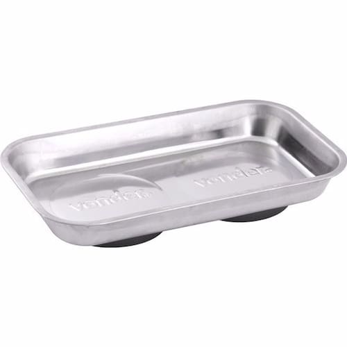 Indicada para armazenagem de pequenas peças e componentes metálicos, tais como: parafusos, pregos, porcas e grampos. Possui base com placa magnética. Características Material da bandeja magnética: Aço inoxidável Acabamento da bandeja magnética: Polido Dimensões da bandeja magnética: 140 mm x 240 mm Profundidade da bandeja magnética: 25,0 mm Itens inclusos 01 Bandeja Ean: 7893946377281