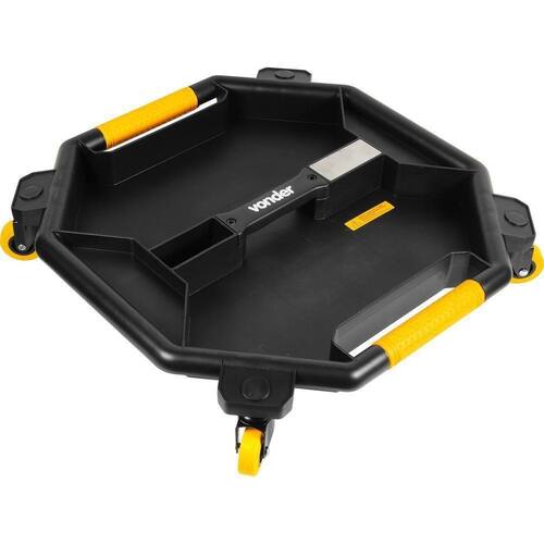 Possui suporte metálicos para colocar lanternas, alça para puxar e rodízios que facilitam a movimentação durante a operação e o serviço.