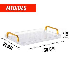 Bandeja multiuso em acrílico com alça média Você já se sentiu frustrado ao tentar arrumar sua casa e notar que os objetos estão sempre fora do lugar Sem uma solução adequada, a desordem pode se acumular, tornando o ambiente menos agradável e prático para o dia a dia. A bandeja com alça média em acrílico é a solução ideal para quem busca elegância e funcionalidade com um design moderno e acabamento transparente, ela não apenas serve bebidas e petiscos com estilo, mas também organiza perfumes, maquiagens e acessórios decorativos. Seu visual clean se adapta a qualquer decoração, trazendo praticidade e sofisticação para sua casa. Benefícios - organiza diversos itens de forma prática - design elegante que valoriza o ambiente - leve e fácil de manusear - fácil de limpar e resistente Especificações técnicas - composição: acrílico resistente - dimensões aproximadas: comp: 30cm x larg: 21cm x alt: 2cm / alça: comp: 13cm acompanha parafusos - cor: transparente Conteúdo da embalagem - 01 bandeja com alça média multiuso em acrílico Não perca a chance de transformar sua casa em um espaço mais organizado e estiloso adquira já a bandeja e sinta a diferença Informações importantes sobre a compra - com de fábrica Dúvidas frequentes: 2 - em quanto tempo meu pedido será enviado 3 - é seguro fazer esta compra Resposta: desde a fundação da nossa empresa, temos milhares de clientes satisfeitos em outras lojas online. Somos uma loja oficial neste marketplace. Além das garantias da plataforma, oferecemos de fábrica. 4 - os produtos têm Resposta: sim, oferecemos de 30 dias em todos os nossos produtos. Se houver qualquer problema, resolveremos da melhor forma possível. 5 - esta compra é segura Resposta: sim, garantimos total segurança na sua compra e sigilo dos seus dados. 6 - e se eu não gostar do produto, terei meu dinheiro de volta Resposta: de acordo com o cdc código de defesa do consumidor , todo cliente de compras online tem até 7 dias para devolver o produto em caso de arrependimento, sem custo na devolução. Você será reembolsado em 100% do valor da compra. Caso tenha alguma dúvida, envie-nos uma mensagem e responderemos o mais rápido possível. Marca: Não Informado