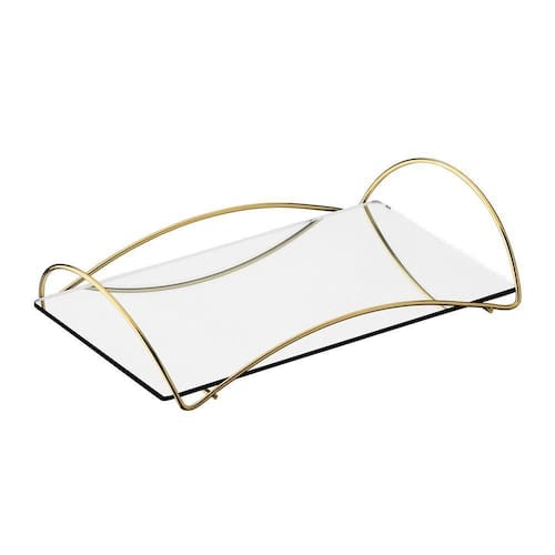A Bandeja Multiuso Hara Bia é um produto estruturado em aço com base em espelho e laterais vazadas. Possui matéria-prima de alta durabilidade e resistência. É um produto criado especialmente para aqueles que não abrem mão do design, charme e da beleza dos detalhes em seu dia a dia.