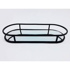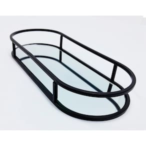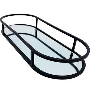 Bandeja Oval Espelhada Metal Preto Lavabo Multiuso 30x12cm -