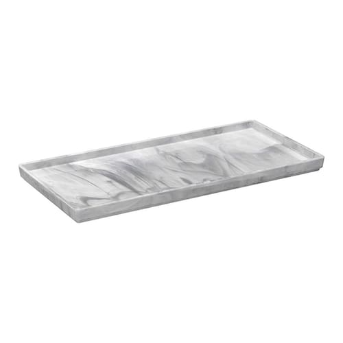 A cor Mármore Branco desta bandeja possui um efeito marmorizado que confere uma aparência única ao produto, tornando-o um destaque em diversos ambientes. Seu design é atemporal, com linhas retas e um perfil slim que atravessa os anos sem sair de moda. Independentemente do estilo de decoração do seu lavabo, a **Bandeja para Banheiro Coza Cube** se encaixará perfeitamente.