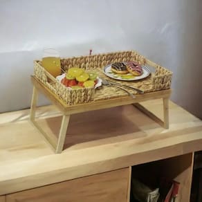 Tenha mais praticidade na hora de servir com o Conjunto de Bandejas para Servir. Este conjunto contém duas peças que podem ser utilizadas separadamente: uma bandeja de cama em bambu e uma bandeja em fibra natural com medidas de 40x30x30cm. Ambas as bandejas são dobráveis e não precisam de montagem, facilitando o armazenamento e transporte. A bandeja de cama em bambu é perfeita para servir o café da manhã na cama ou para utilizar como apoio para o notebook ou tablet. Já a bandeja em fibra natural é ideal para servir bebidas e petiscos em festas e reuniões. Com design elegante e funcional, este conjunto de bandejas para servir é perfeito para quem busca praticidade e versatilidade na hora de servir. Adquira agora este conjunto e tenha uma experiência incrível na hora de servir seus convidados ou desfrutar de momentos especiais.