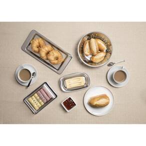 A torta fria e o rocambole são excelentes opções para happy hour com os amigos e servi-las em um recipiente adequado e elegante faz toda a diferença. A bandeja para torta fria e rocambole da linha Átina foi especialmente desenhada para este fim. A peça tem a forma e as dimensões perfeitas para estes alimentos e, além disso, é feita em aço inox, um material resistente, que não possui porosidades - e por isso não altera o sabor e o aroma dos alimentos e se torna super fácil de limpar. O produto tem 40x16cm de dimensão.