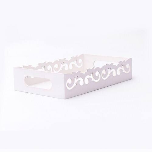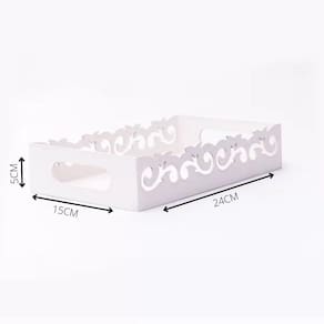 Bandeja Personalizada Para Café Da Manhã 100% Mdf (24x15x05) Branco Bandeja Personalizada para Café da Manhã 100% MDF (24X15x05) Branco - Bandeja com Arabesco Para quem precisa organizar, e não abre mão da delicadeza, estas Bandejas vão ajudar na organização da sua casa, seja no quarto para guardar maquiagens, cremes, perfume e outros produtos, seja no banheiro organizando os produtos de higiene, na sala com taças, copos, bebidas e várias outras coisas sempre deixando a decoração do ambiente melhor.