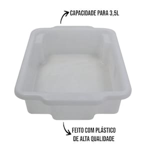 FICHA TÉCNICA: Conteúdo: - Caixa Multiuso 3,5L - Cor: Branco - Desenvolvido em plástico PP Polipropileno - Livre de BPA Bisfenol A - Feito com Material atóxico - Indicado para freezer - Capacidade: 3,5L - Tramanho: 21,5 x 33 x 7 - Peso: 120g Marca: Dupétriz