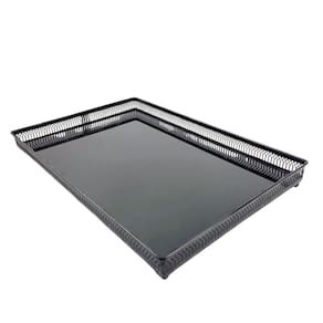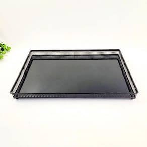 Bandeja Preta Italiana Retagular 45x30x5cm Decoração Bandeja Preta em Metal com Vidro Preto Adicione Sofisticação ao Seu Espaço com Nossa Bandeja Preta em Metal com Vidro Preto - Compre Agora
