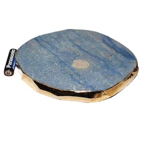 Bandeja de Quartzo Azul natural com 17 centimetros com borda dourada ideal para petisqueira e uma otima decoração Parte superior polida