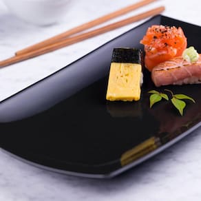 Bandeja Rasa Preto Oriental 22cm Porcelana Germer Prato Para Sushi e Sashimi.
