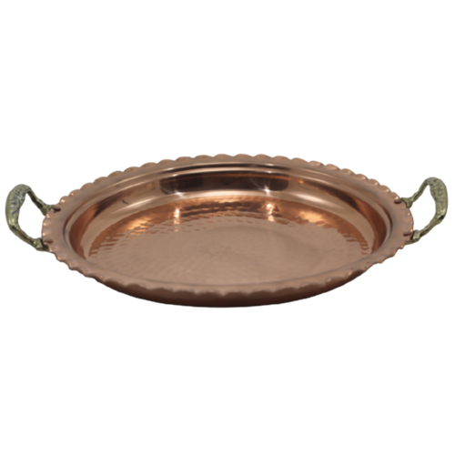 Bandeja Redonda Cobre Puro com Alças em Liga de Bronze 53cm
