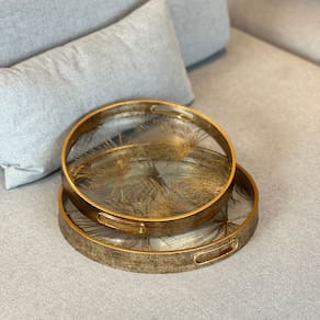 Eleve a sofisticação do seu espaço com esta bandeja dourada, perfeita para servir com requinte ou compor a decoração com charme e delicadeza.