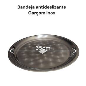 A BANDEJA REDONDA DE AÇO INOXIDÁVEL COM 35 CM DE DIÂMETRO E PLACA ANTIDESLIZANTE É UMA EXCELENTE ESCOLHA PARA SERVIR ALIMENTOS E BEBIDAS COM PRATICIDADE E SEGURANÇA. A PLACA ANTIDESLIZANTE AJUDA A EVITAR QUE COPOS E PRATOS ESCORREGUEM DURANTE O TRANSPORTE DA BANDEJA, GARANTINDO QUE OS ITENS SEJAM ENTREGUES COM SEGURANÇA AOS CLIENTES.O AÇO INOXIDÁVEL É UM MATERIAL DURÁVEL E RESISTENTE, FÁCIL DE LIMPAR E QUE NÃO ENFERRUJA, O QUE FAZ DA BANDEJA REDONDA DE AÇO INOXIDÁVEL UMA ESCOLHA POPULAR EM BARES, RESTAURANTES E EVENTOS.