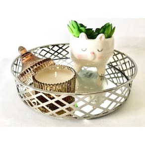 Contém 1 Bandeja Redonda Prata espelhada Diâmetro 20,5 x Altura 5cm Cor : Prata Tamanho: Diâmetro 20,5cm x Altura 5cm Material : Metal e espelho A bandeja é uma peça muito prática e útil para ter em casa, podendo ser usada para decorar ou para servir. Uma ótima opção é a bandeja, que se encaixa em qualquer cenário. Com essa linda, moderna e delicada bandeja Redonda Prata espelhada com detalhes vazados você deixará Ainda mais bonito, delicado e charmoso seu lavabo, banheiro, quarto, sala, escritório ou hall. Você vai deixar seu ambiente mais charmoso e delicado Atenção: Limpar as peças com pano limpo e seco, não molhar Não acompanha enfeites decorativos. Cuidados: Limpar com pano seco e não passar produtos químicos e abrasivos. Atenção: Podem conter fotos com outras peças decorativas, como sugestão de uso e decoração, vendidas separadamente ou somente ilustrativa. Ean: 7908175202836
