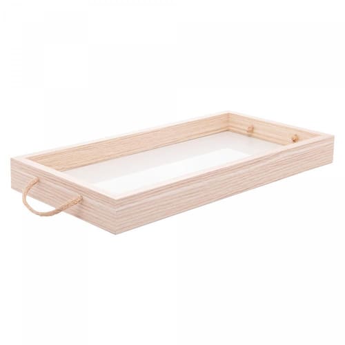 Bandeja Retangular de MDF com Fundo Tipo Palha Natural e Alça - Lyor