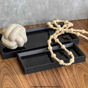Bandeja Retangular Em MDF Com Vidro Preta 38x18cm Mart -