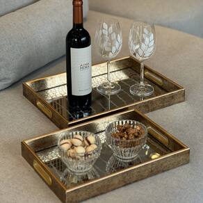 A bandeja retangular dourada craquelada traz um toque de sofisticação para qualquer ambiente. Ideal para ocasiões especiais ou para elevar o dia a dia com elegância.
