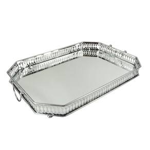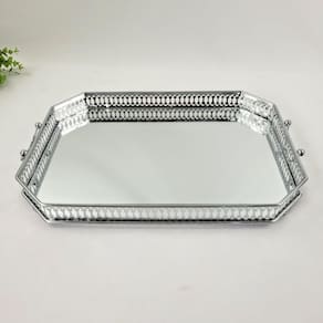 Bandeja Retangular Espelhada Cromada Prateada Decoração