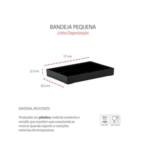 Contem:1 Bandeja Pequena Medidas: 17 x 8,3 x 2,3 cmPeso: 53 gMaterial: Plastico