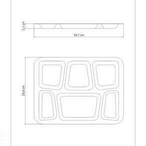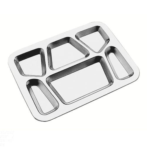 A Bandeja Tramontina em Aço Inox com 6 Divisórias é a escolha perfeita para servir uma refeição completa. Produzida em Aço Inox com acabamento em brilho, é um produto ideal para ser utilizado em hospitais, escolas e restaurantes, já que suas 6 divisórias permitem a separação dos alimentos e assim servir todos os tipos de dietas, além do material garantir fácil limpeza e poder ser esterilizado. Um item prático e versátil, pensado para otimizar essa tarefa tão importante! Orientações Totalmente feita de aço inox, por isso não solta nenhum resíduo nos alimentos, mantendo-os saudáveis. Altamente durável mantém suas características originais, preservando a beleza, a higiene e a durabilidade do material. Acabamento em brilho.Beleza e praticidade em seu design. Higiênica e de fácil limpeza. Pode ser lavada diariamente na máquina de lavar louças. Características Gerais EAN13 7891116007860 DUN14 17891116007867 NCM 7323.93.00 Peso Líquido 0,5850 kg. Peso Bruto 0,5850 kg. Metragem 0,002331 m³. Dimensões Embalagem (Compr. X Larg. X Alt.) 395x 295x 20 mm. Dimensões Produto (Compr. X Larg. X Alt.) 397x 296x 21 mm. Espessura 0,6 mm. Observações Use apenas sabão ou detergente e uma esponja macia. Outros tipos de produto como palha de aço, poderão riscar ou prejudicar o brilho da peça. Enxágue cada item a fim de remover totalmente os resíduos dos produtos de limpeza, que, por serem abrasivos, podem danificar o inox. Sempre que possível, use água quente, pois renova o brilho da peça. Após a lavagem, enxugue imediatamente a peça, caso contrário, as substâncias químicas da água (cloro) poderão causar manchas. Evite atrito entre as peças durante o processo de lavagem e no armazenamento, para mantê-la sem riscos. Evite o contato do produto com superfícies quentes, pois elas provocam a descoloração do material. Não guarde a peça em locais úmidos. A umidade também provoca manchas.