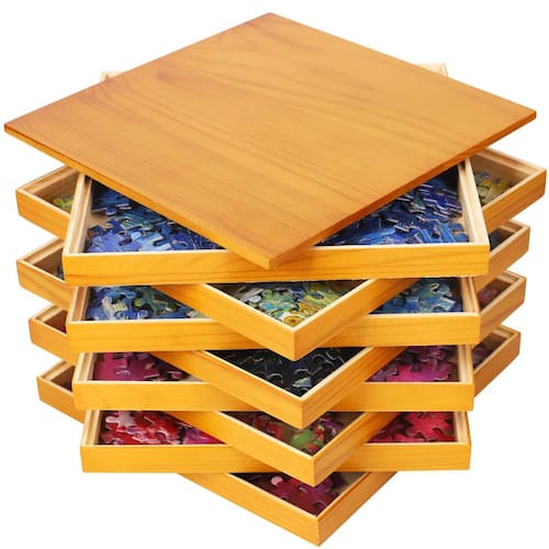 Transforme sua experiência de resolução de quebra-cabeças com nossas bandejas de classificação de quebra-cabeça de madeira premium, um item essencial para entusiastas de quebra-cabeças. Projetadas com a forma e a função em mente, essas bandejas de quebra-cabeça para classificar mais de 1000 peças fornecem uma maneira robusta e elegante de classificar e armazenar suas peças do quebra-cabeça. As bandejas empilháveis de classificação de quebra-cabeça economizam espaço enquanto mantêm sua área de trabalho organizada, e seu acabamento de madeira suave garante que suas peças permaneçam seguras e livres de arranhões. - Design de madeira elegante: Feito de madeira de alta qualidade, essas bandejas de classificação de quebra-cabeça são projetadas para durabilidade e um visual sofisticado, perfeitas para entusiastas de quebra-cabeças que buscam uma solução mais refinada para o seu organizador de quebra-cabeças. - Empilháveis e economizam espaço: essas bandejas de quebra-cabeça para classificação são facilmente empilháveis, ajudando você a economizar espaço e manter seu espaço de trabalho organizado enquanto trabalha em quebra-cabeças de mais de 1000 peças ou menores. - Acabamento suave e protetor: as bandejas de quebra-cabeça de madeira apresentam um acabamento suave para garantir que suas peças permaneçam protegidas e intactas durante a triagem e armazenamento. - Ideal para quebra-cabeças grandes: Projetado para armazenar e organizar até 1500 peças, este classificador de quebra-cabeças é perfeito para amadores que lidam com quebra-cabeças complexos. - Organizador multiuso: além de quebra-cabeças, essas bandejas versáteis de classificação de quebra-cabeças para triagem podem ser usadas para contas, artesanato ou qualquer item pequeno, tornando-as uma adição funcional à sua casa.