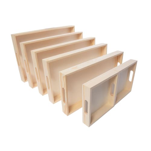 Desbloqueie possibilidades infinitas com as bandejas aninhadas de madeira Creative Hobbies, pacote com 7. Cortadas com precisão em painéis de madeira ecológicos, essas sete bandejas retangulares variam de 16 ? × 10,25 ? × 1,5 ? até duas peças de 6 ? × 6 × 1 ?. Suas superfícies lixadas e inacabadas estão prontas para seu toque artístico: pinte padrões vibrantes, aplique uma mancha rústica ou decoupage fotos para criar peças de decoração personalizadas. Cada bandeja possui uma borda sutil de 1—1,5 ? para manter o conteúdo seguro e uma base de 1/16 ? de espessura para maior durabilidade. Alças recortadas em ambos os lados permitem fácil transporte de mesa para bancada. Quando os projetos estiverem concluídos, encaixe as bandejas para economizar espaço. Se você está encurralando ferramentas artesanais, arrumando velas e suculentas ou oferecendo uma tábua de charcutaria improvisada, essas bandejas combinam função com design e são um presente atencioso para os amantes de bricolage.