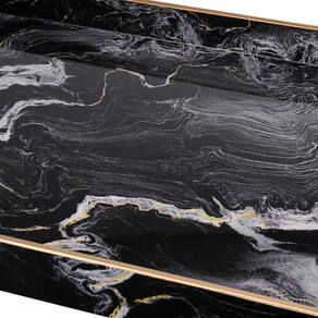 Conjunto Benjara de 19 e 18 polegadas de 2 bandejas decorativas modernas com aros, preto e branco