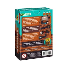 Bandida Em Bandida, os jogadores enfrentam um grande desafio em um dos três modos de jogo diferentes. Com regras simples e partidas rápidas de 15 minutos, este jogo cooperativo é perfeito para momentos de diversão com amigos ou família. Modos de Jogo:Capture a Bandida: Trabalhem juntos para fechar todas as saídas e impedir a fuga da prisioneira.Ajude a Bandida a Escapar: Unam forças para criar uma rota segura e ajudá-la a escapar dos túneis subterrâneos.A Fuga dos Amantes: Para quem já possui o jogo Bandido vendido separadamente , esse modo especial desafia você a ajudar um casal de fugitivos a escapar juntosCom componentes compactos e de alta qualidade, Bandida é fácil de transportar e proporciona tensão e diversão em qualquer lugar. Inclui: 71 cartasManual de regrasCaracterísticas: 1 a 4 jogadores15 minutos por partidaIndicado a partir de 6 anosGaranta o seu e decida: vai capturar ou libertar a prisioneira Homologação Inmetro: IP-BRI-2312/2021-03 Marca: Não Informado