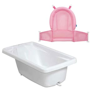 Conteúdo da Embalagem: 1 Banheira Avulsa Branco - Burigotto 1 Rede Protetora de Banho Baby para Banheira Rosa - Buba