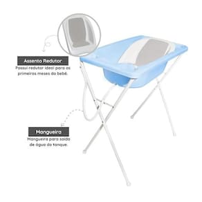 Banheira Bebê Galzerano Acqua Trio Azul com Suporte e com Redutor desmontável referência 7065AZP ideal para mães que buscam , praticidade e estabilidade durante os banhos. Garantindo momentos confortáveis para você e seu bebê. Com design prático e funcional, essa banheira é 2 em 1 o tanque pode ser utilizado no suporte ou fora, de fácil manuseio e armazenamento. O suporte ergonômico facilita o manuseio e acomodação da banheira, além de trazer conforto para quem vai dar o banho no bebê. Ainda conta com o Assento Redutor, este é ideal para o banho do seu recém-nascido, pois possui assento em plástico, com sistema antiderrapante.