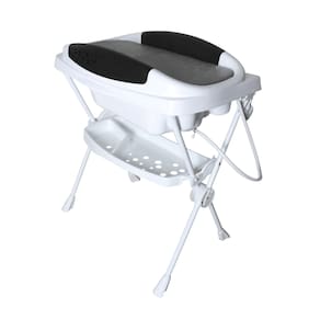 Trocador Acolchoado: A banheira acompanha um trocador acolchoado que facilita a troca de fraldas e roupas, proporcionando uma superfície confortável e segura para o bebê.