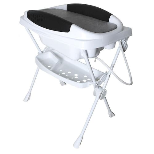 Descrição: Produto nacional; Design moderno; Estrutura em aço; Banheira desmontável; Pés dobráveis facilitando o transporte e armazenamento - mais compacto; Capacidade máxima da banheira (bebê + água) = 20 kg; banheira 2 em 1 - o tanque pode ser utilizado no suporte ou fora; Banheira com porta shampoo e sabonete; Mangueira para saída de água do tanque e fixação segura (presilha metálica) ; Válvula para impedir a saída de água quando o tanque for utilizado fora do suporte; Banheira com gancho para armazenamento; Trocador almofadado com maior proteção lateral; Fácil limpeza; foto do produto porta objetos amplo e com divisória; Porta objetos com capacidade de 3 kg; Banheira com trava de fechamento do suporte; redutor da banheira; composição têxtil 100% pvc. Medidas: Alt. 96cm Larg. 82cm Comp. 54,5cm Peso. 7,5kg